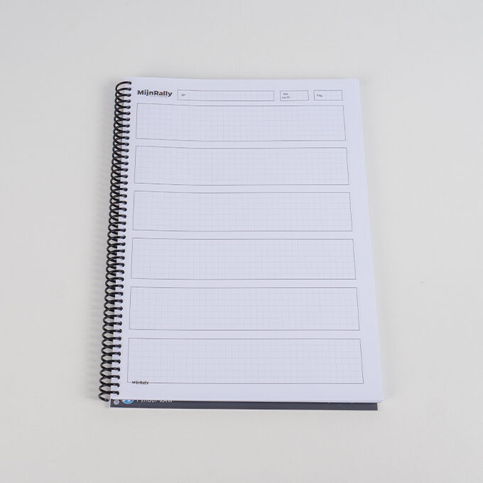 Das Codriver Notebook ist in zwei praktischen Größen erhältlich: A4 und A5. So können Sie wählen, welches Format am besten zu Ihren Vorlieben und Bedürfnissen passt. Beide Versionen sind mit einer Kunststoffspiralbindung versehen, die dafür sorgt, dass Ihre Notizen sicher und ordentlich zusammengehalten werden.